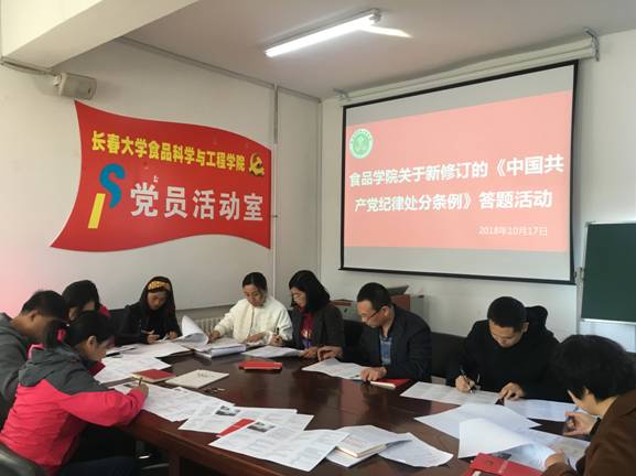 10月17日学院全体党员为深入学习宣传新修订的《中国共产党纪律处分条例》,营造浓厚学习氛围,根据学校纪委通知要求,要求学院全体党员参与学习新修订《条例》答题活动。