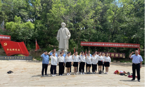 参观结束后,全体党员教师在杨靖宇烈士的雕像下重温了入党誓言。在党总支书记高长城的带领下,全体党员进行了宣誓,不忘初心、牢记使命,从党的历史中汲取奋进力量,积极发挥党员模范作用,做一名“让党放心、让人民满意”的合格党员。